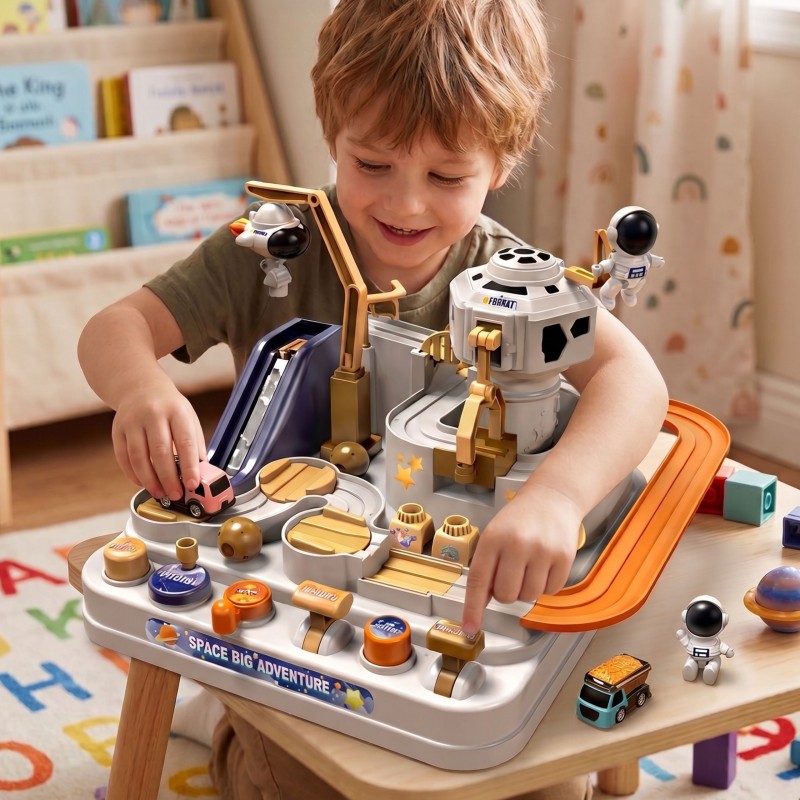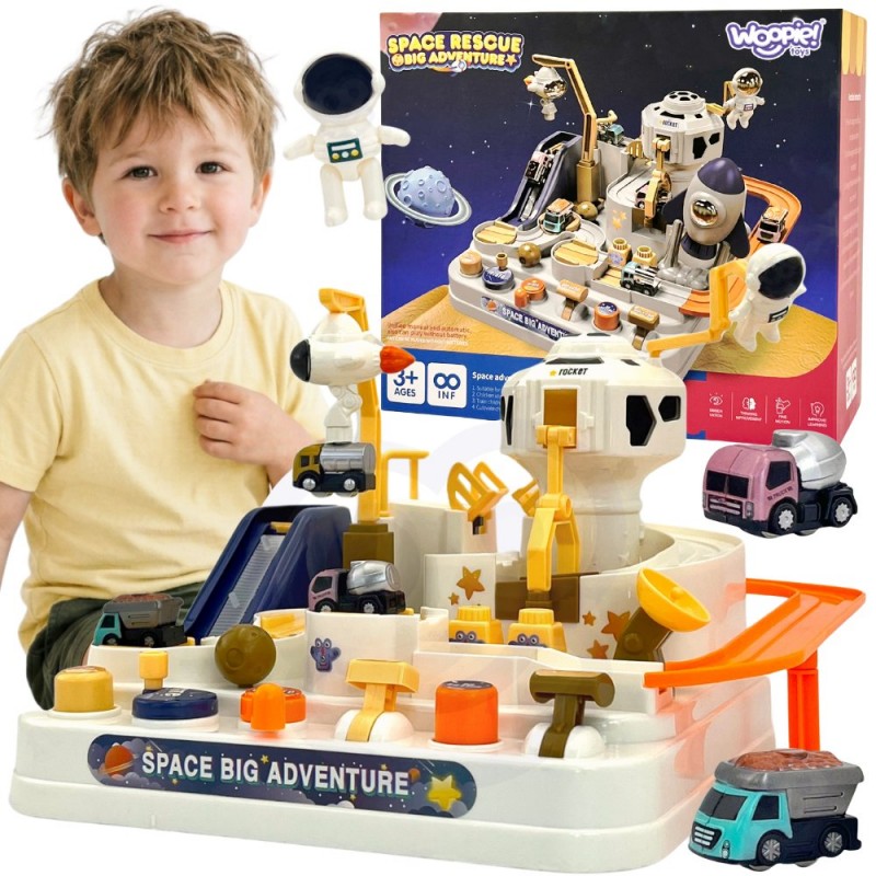 WOOPIE Interaktywny Tor Przeszkód Kosmiczna Przygoda Astronauty to wspaniała zabawka, która zabierze Twoje dziecko w fascynującą, międzygalaktyczną podróż. Konstrukcja toru opiera się na mechanicznym działaniu, co oznacza, że do świetnej zabawy nie są potrzebne żadne baterie. Maluch ma do dyspozycji różnorodne dźwignie, pokrętła i przyciski, za pomocą których musi poprowadzić małe pojazdy przez najeżoną niespodziankami kosmiczną bazę. Zabawka nie tylko gwarantuje wielogodzinną rozrywkę, ale również stanowi doskonałe narzędzie wspierające rozwój motoryczny i logiczne myślenie. Pokonywanie kolejnych przeszkód wymaga od dziecka skupienia, precyzji oraz analizy przyczyny i skutku. Barwna, kosmiczna stylistyka przyciąga wzrok i mocno angażuje wyobraźnię młodego odkrywcy.