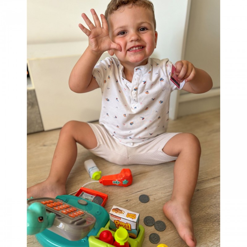 Interaktywna kasa sklepowa z uroczym dinozaurem to propozycja dla dzieci, które uwielbiają kreatywną zabawę w odgrywanie ról. Ten kolorowy zestaw zamieni każdy pokój w prawdziwy sklepik, w którym dziecko może wcielić się w rolę sprzedawcy, kasjera lub klienta. Dzięki zastosowaniu realistycznych funkcji – takich jak kalkulator, czytnik kodów kreskowych z efektem dźwiękowym oraz otwierana szuflada na pieniądze – zabawa staje się jeszcze bardziej angażująca i pouczająca. Zestaw zawiera również liczne akcesoria, takie jak miniaturowe butelki, karton ciasteczek, imitacje pieniędzy i karty bankowe, które umożliwiają pełne odtworzenie zakupowego doświadczenia. Całość wykonana została z bezpiecznych i trwałych materiałów, a przyjazna estetyka w pastelowych kolorach oraz obecność sympatycznego dinozaura zachęca dziecko do wielogodzinnej, wesołej zabawy. To doskonały wybór dla rodziców, którzy chcą łączyć rozrywkę z nauką poprzez bezpieczną, edukacyjną zabawę. Zabawka wspiera rozwój umiejętności matematycznych, koordynacji ręka-oko oraz zdolności komunikacyjnych. Dzięki niej dzieci uczą się liczyć, rozpoznawać pieniądze, podejmować decyzje i nawiązywać interakcje społeczne. Zestaw zapakowany jest w atrakcyjne, kolorowe opakowanie z okienkiem, które od razu przyciąga wzrok i cieszy oko najmłodszych.