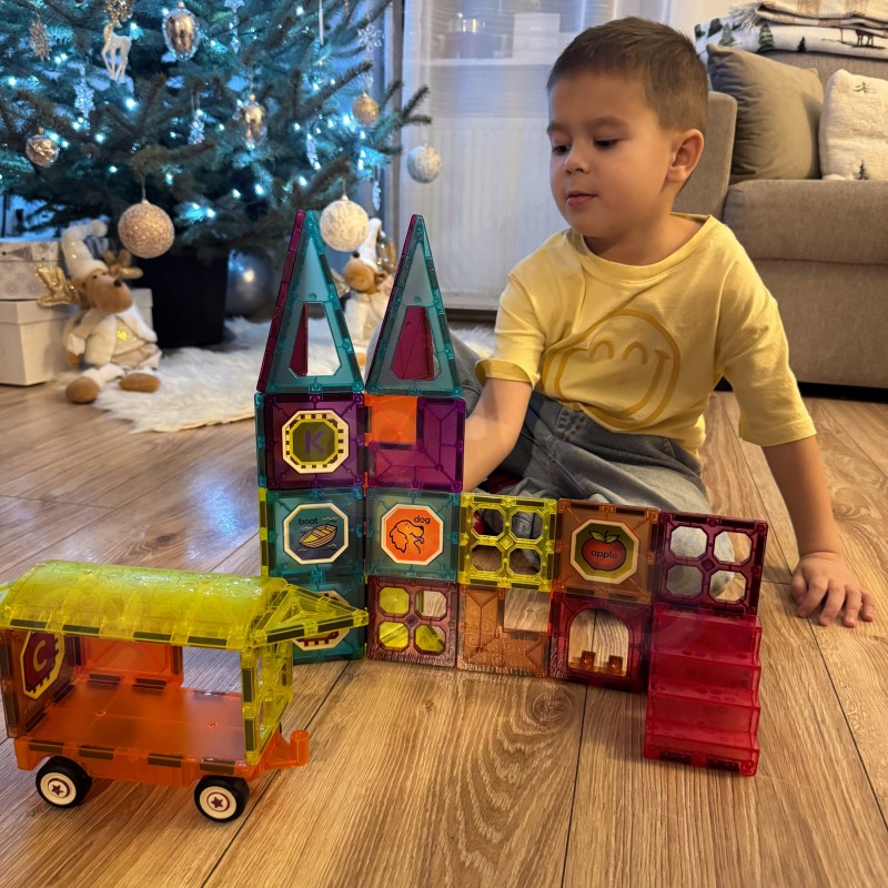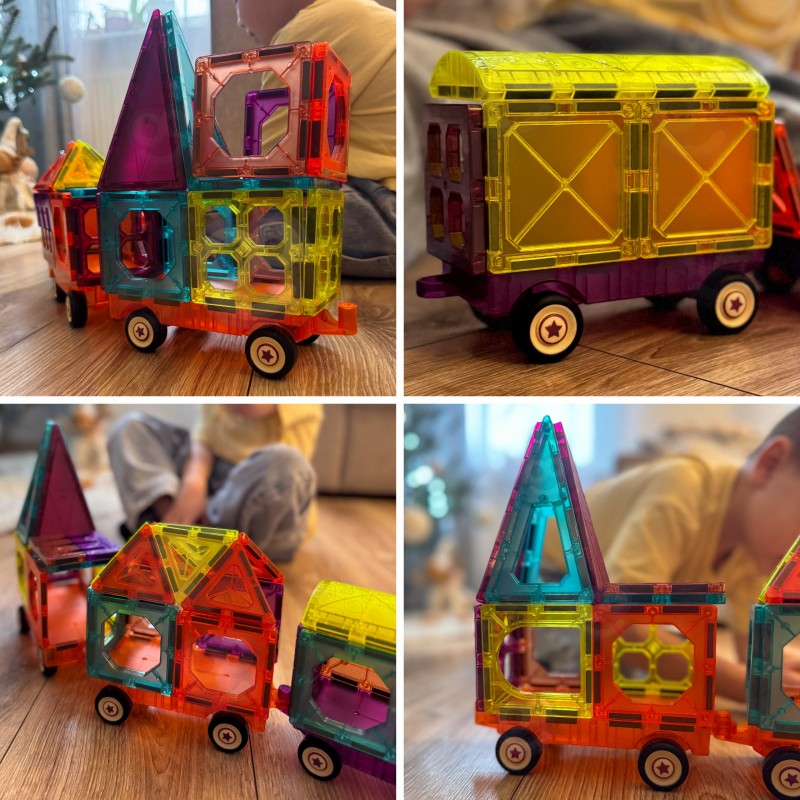 Zbuduj swój własny, kolorowy pociąg! Ten 71-elementowy zestaw klocków magnetycznych od marki Woopie to idealna zabawka do tworzenia różnorodnych pojazdów. Klocki łączą się w prosty i magiczny sposób, dzięki wbudowanym magnesom. Pozwalają na swobodne tworzenie pociągu z wagonami lub innych konstrukcji, rozwijając jednocześnie wyobraźnię przestrzenną i umiejętności manualne. To idealny wstęp do nauki z koncepcją STEAM, łączącej naukę i kreatywność.