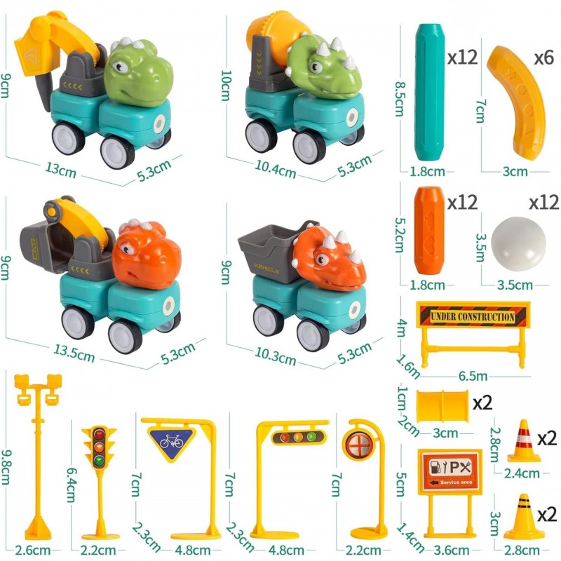 ▶️ Wymiary produktu: Kulka- 3,5 x 3,5 (cm) / Duży klocek- 1,8 x 8,5 (cm) / Zagięty klocek- 3 x 7 (cm) / Mały klocek- 1,8 x 10 (cm) / Dinozaur- 10 x 6 x 10 (cm)
