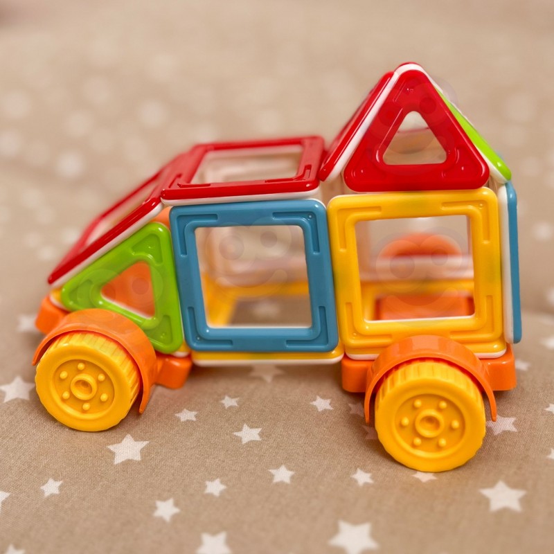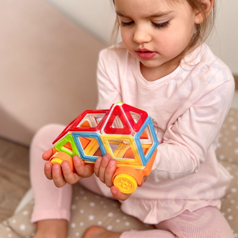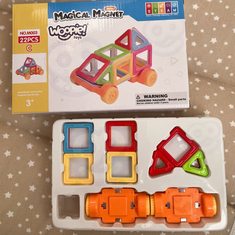 Odkryj magię budowania z zestawem klocków magnetycznych 3D od marki Woopie! Ten kompaktowy zestaw zawiera 22 różnokolorowe elementy, idealne dla małych konstruktorów. Klocki o kształcie kwadratów i trójkątów łączą się ze sobą za pomocą magnesów, umożliwiając tworzenie trójwymiarowych budowli, takich jak domek czy pojazd na kółkach. Magnetyczne łączenia sprawiają, że konstrukcje są stabilne i łatwe do tworzenia i przekształcania, co jest idealne dla dzieci powyżej 3 roku życia. Klocki wspierają rozwój w ramach koncepcji STEAM (Science, Technology, Engineering, Art, Maths), inspirując do nauki poprzez zabawę. Żywe, przezroczyste kolory przyciągają uwagę, a sama zabawa rozwija wyobraźnię przestrzenną i zdolności manualne. Ten zestaw to świetny start w przygodę z klockami magnetycznymi lub idealne uzupełnienie większej kolekcji.