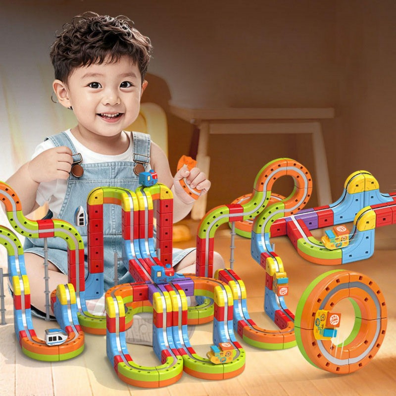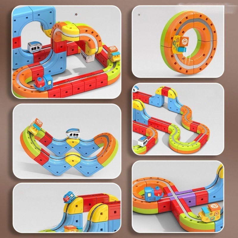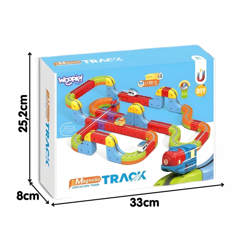 WOOPIE Magiczna Kolejka Kostkowa Klocki Konstrukcyjne Tor Antygrawitacyjny Magnetyczny 68el.