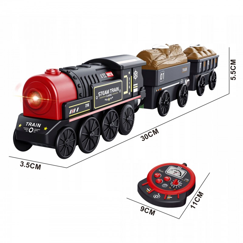 Przenieś swoje dziecko w fascynujący świat kolei z Kolejką Retro Zdalnie Sterowaną od marki Woopie! Ten 4-częściowy zestaw zapewnia mnóstwo kreatywnej zabawy, w której maluch może wcielić się w rolę prawdziwego maszynisty. Realistyczny wygląd lokomotywy parowej, efekty świetlne i dźwiękowe , specjalny pilot w kształcie panelu sterowania sprawiają, że zabawa jest niezwykle wciągająca. Kolejka składa się z lokomotywy i dwóch wagonów towarowych. Zabawka przeznaczona jest dla dzieci od 3 roku życia. Zdalne sterowanie rozwija zdolności manualne i koordynację wzrokowo-ruchową, a jednocześnie dostarcza wielogodzinnej, pasjonującej rozrywki!