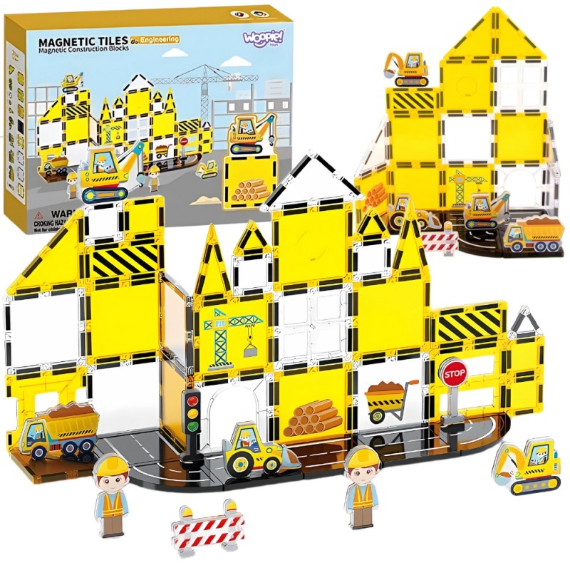Zestaw magnetycznych klocków Plac Budowy marki Woopie to fascynująca przygoda ze światem budowania, która zamieni każde dziecko w małego inżyniera! Ten 47-elementowy zestaw pozwala tworzyć imponujące konstrukcje budowlane, place budowy i architektoniczne arcydzieła dzięki silnym magnetom, które łączą się z satysfakcjonującym kliknięciem. Żywe żółte i białe płytki doskonale współgrają z pojazdami budowlanymi i figurkami robotników, tworząc realistyczny świat pełen możliwości. Magnesy neodymowe gwarantują stabilność konstrukcji, a przezroczyste elementy dodają efektu wizualnego, który zachwyci każdego małego budowniczego.