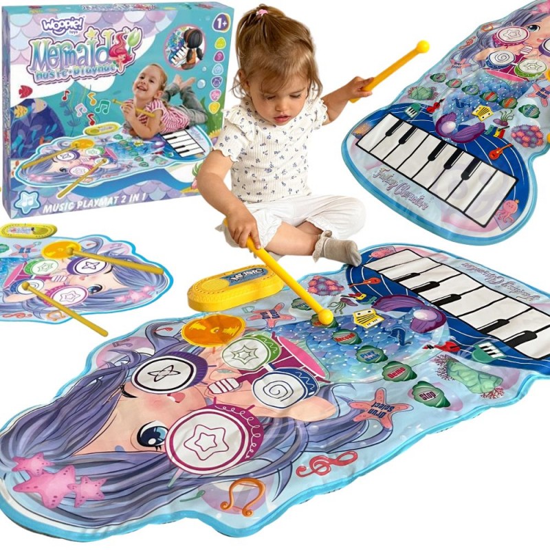 Odkryj magiczny świat muzyki i wyobraźni z matą muzyczną 2w1 z motywem syrenki od Woopie! Mata łączy funkcje pianinka, perkusji i zabawy sensorycznej w jednej interaktywnej formie. To idealne połączenie zabawy, ruchu i nauki. Zachwyci każdego malucha, który kocha muzykę i kolorowy świat podwodnych przygód. Zachwyca motywem syrenki, bogactwem dźwięków oraz funkcjami, które rozwijają zmysły i zdolności dziecka od najmłodszych lat. Wystarczy nacisnąć odpowiedni element, aby usłyszeć dźwięki instrumentów, melodyjki i rytmy! Dzięki zestawowi instrumentów, padom perkusyjnym i klawiaturze fortepianowej, maluch może wcielić się w małego muzyka, komponować własne rytmy, a jednocześnie doskonalić motorykę, słuch i kreatywność. To idealna zabawka dla dzieci już od pierwszego roku życia – bezpieczna, edukacyjna i zapewniająca pełno frajdy!