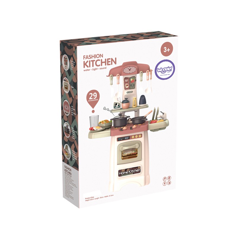 Czerwona Modna Domowa Kuchnia marki Woopie jest wszystkim czego potrzebuję młody kucharz. Maluch może w pełni korzystać z każdego zakamarka w kuchni, dzięki otwieranym i ruchomym elementom, jak: piekarnik, kran czy pokrętła od kuchenki. Wiele specjalnych funkcji pozwoli dziecku poczuć się jak w prawdziwej kuchni. Młodu kucharz może gotować na palniku, który świecić i wydaje dźwięki podczas gotowania oraz zmyć naczynia pod kranem z prawdziwą wodą. Kuchenka wyposażona jest w imitację: piekarnika z wyświetlaczem i guzikami, zegar klasyczny, tablice z menu, zlew, kran, suszarkę na talerze, blat, palniki z pokrętłami, półkę na akcesoria i haczyki na przybory kuchenne. Wiele artykułów spożywczych, przypraw i akcesoriów kuchennych np. jajko, pieprz, talerze sprawią, że twoje dziecko nigdy nie znudzi się gotowaniem to coraz różniejszych potraw i organizowaniem uczt ze znajomymi. Pamiętaj, że dzieci uwielbiają naśladować swoich rodziców, a odgrywanie ról niezwykle rozwija wyobraźnie i kreatywność malucha!