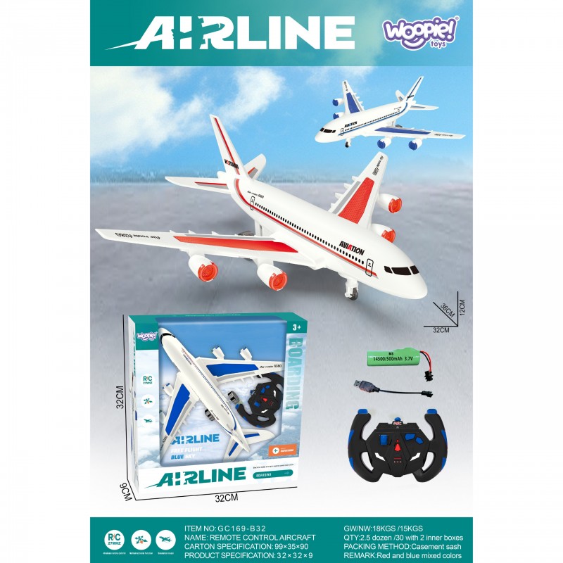Niebieski Zdalnie Sterowany Samolot Pasażerski AIRLINE pozwoli na wejście na wyższy poziom zabawy w odgrywanie roli pilota. Wykonany z wysokiej jakości materiałów z efektownym biało-czerwonym designem w paski z pewności zapewni niezapomniane doznania podczas zabawy.