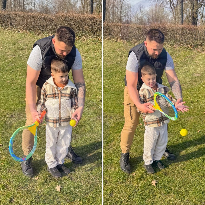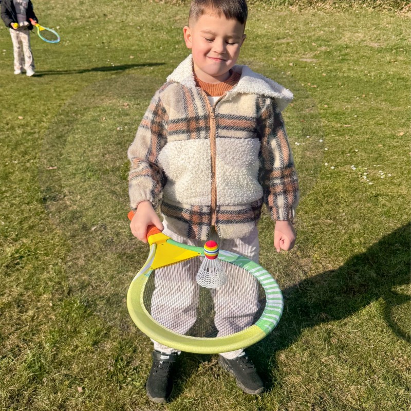 Kolorowe Paletki do badmintona dla dzieci od marki Woopie to doskonała propozycja na aktywną i radosną zabawę na świeżym powietrzu. Zaprojektowany z myślą o najmłodszych, zestaw łączy w sobie bezpieczeństwo, lekkość i frajdę z ruchu, oferując dzieciom wspaniałą rozrywkę na podwórku, w ogrodzie, na plaży czy w domu. Zestaw idealnie sprawdzi się w zabawie z rodzeństwem, przyjaciółmi lub rodzicami. W skład zestawu wchodzą dwie duże rakiety wykonane z lekkiej pianki EVA z bezpiecznym naciągiem, piankowa piłka oraz kolorowa lotka z miękką końcówką. Zabawka została zaprojektowana tak, by dzieci mogły łatwo nią grać, nie męcząc się i nie ryzykując urazów. Duże wymiary rakiet pozwalają na łatwe trafianie w piłkę, co sprawia, że gra jest prosta i satysfakcjonująca.Dzięki żywej kolorystyce i miękkim materiałom, dzieci chętnie po niego sięgają, a rodzice mogą być spokojni o bezpieczeństwo swojej pociechy.