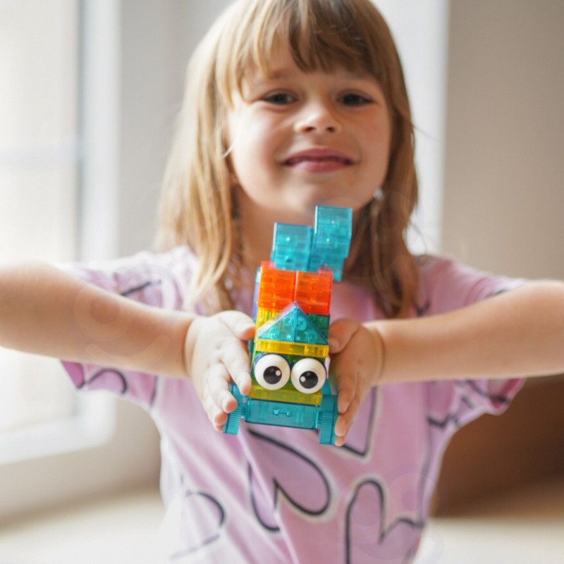 Magiczne, przezroczyste klocki magnetyczne marki Woopie przenoszą dziecko w świat budowania pełen koloru, światła i ruchu – od wesołych pojazdów i zwierzaków po fantazyjne budowle i tory łuków, które składają się „same” dzięki ukrytym magnesom i lekkim, gładkim elementom przyjaznym dla małych rąk.
