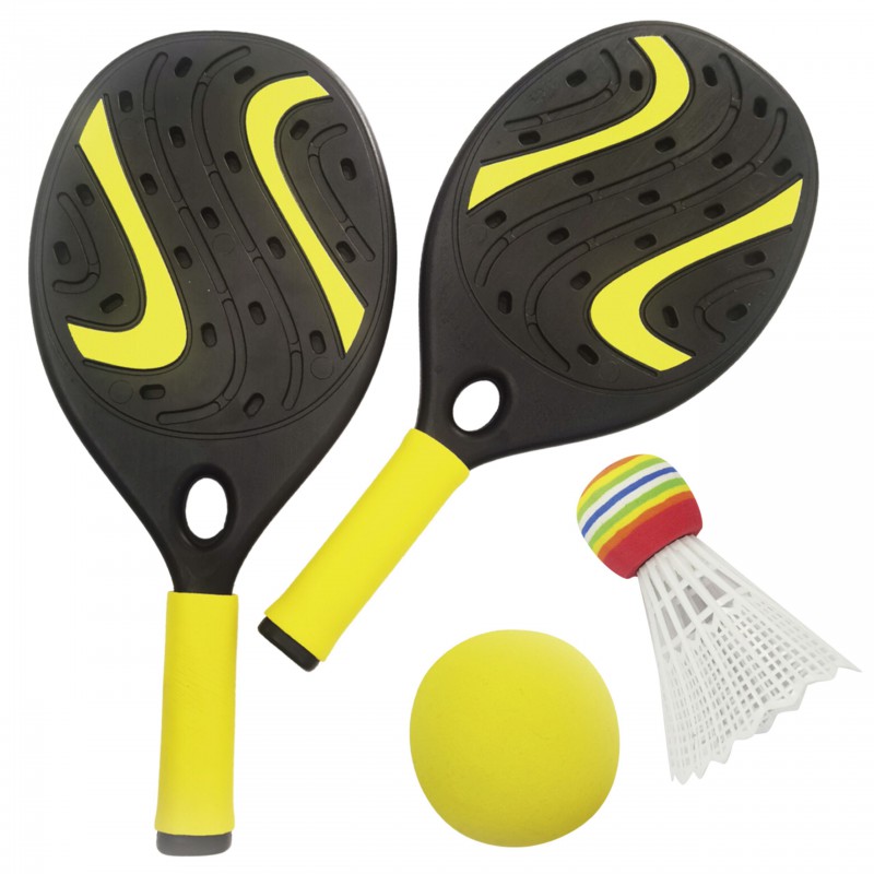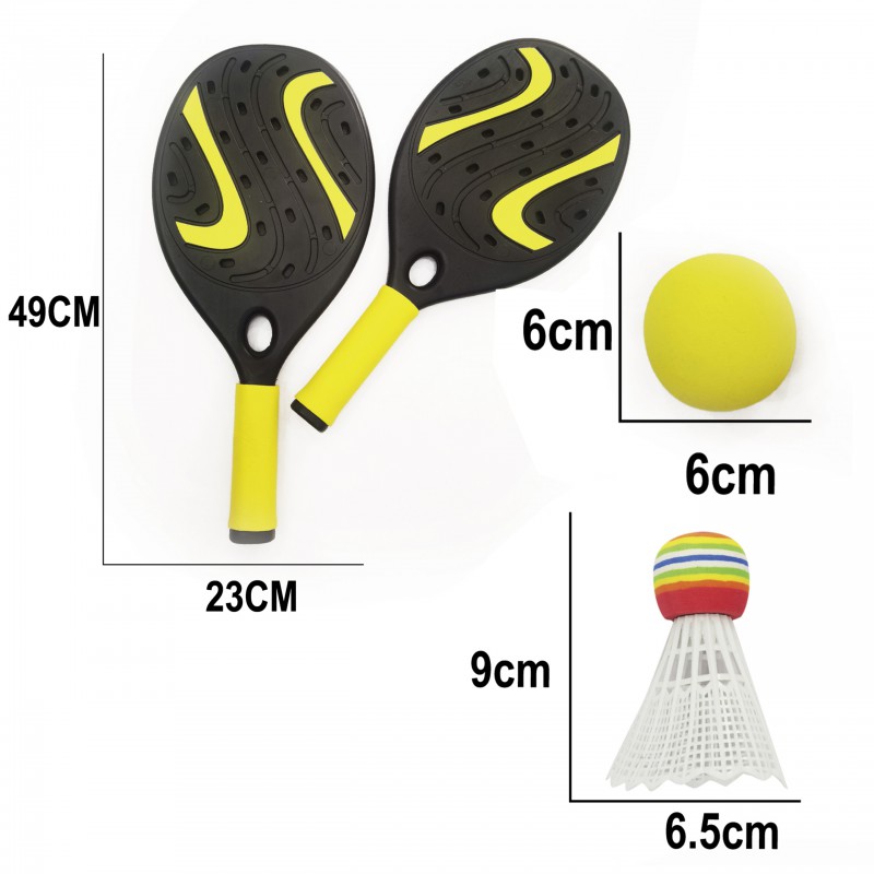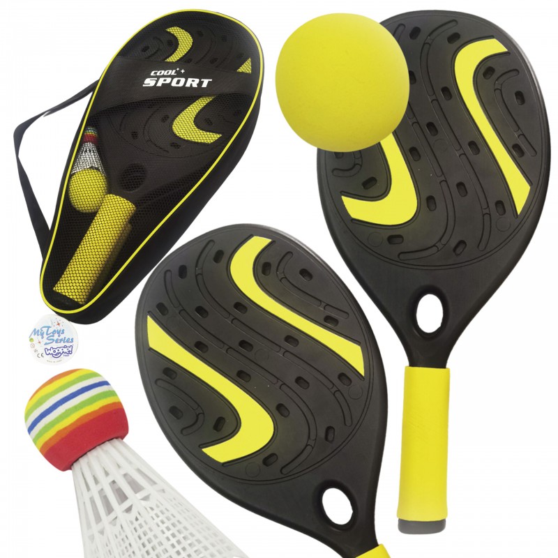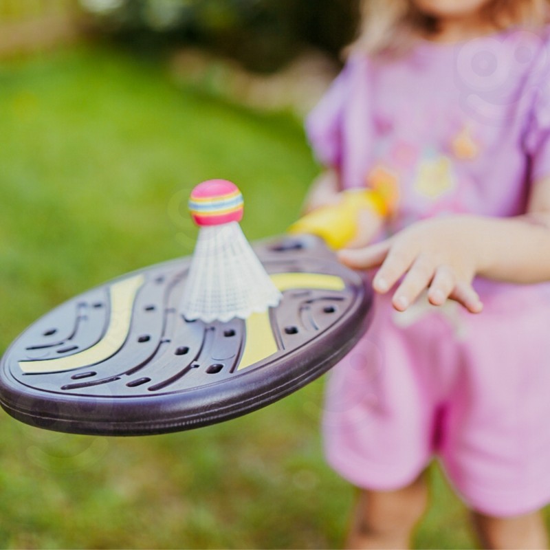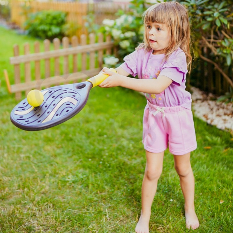 Zestaw rakiet od marki WOOPIE to super sposób na aktywne spędzanie czasu w ciepłe dni. Zestaw zawiera dwie wytrzymałe rakiety, piłkę wykonaną z miękkiej gąbki oraz lotkę, dzięki czemu razem z rakietkami można grać w różne gry sportowe. Dla wygodnego transportu i przechowywania, zestaw spakowany jest do dobrej jakości, zasuwanego etui. Uprawianie sportu korzystnie wpływa na rozwój dużej motoryki, jednocześnie poprawiając koncentrację oraz koordynację ruchową.