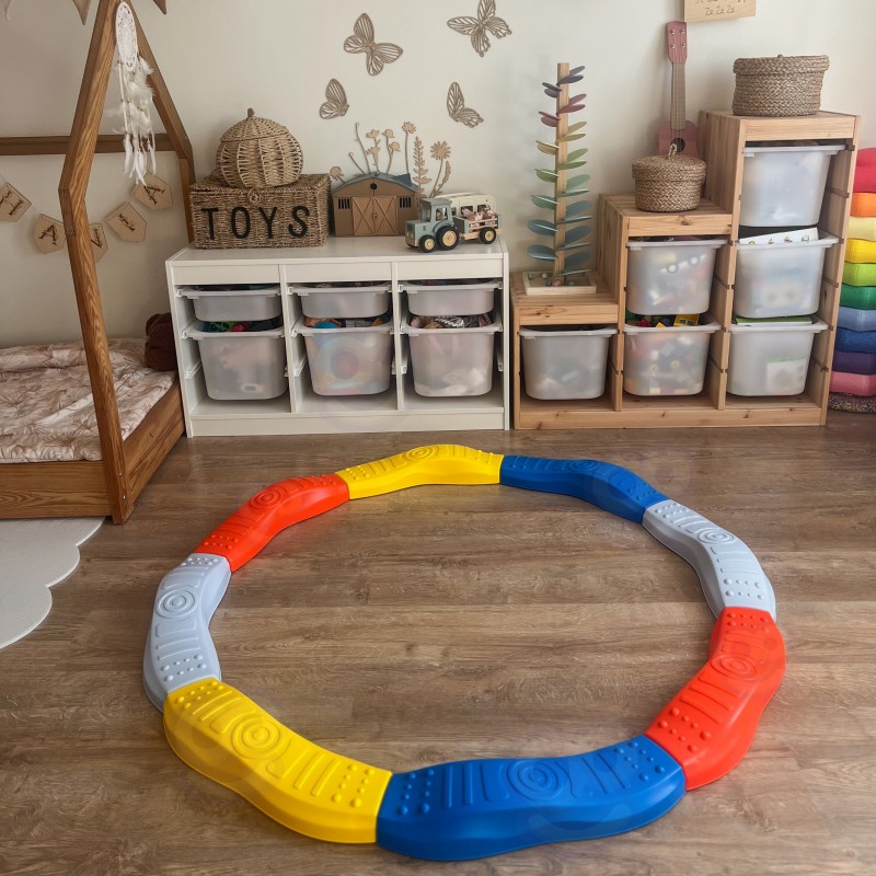 Wprowadź aktywność i rozwój do świata Twojego dziecka z Balansującym Kołem Sensorycznym od marki Woopie! Ta modułowa ścieżka w kształcie koła to fantastyczny sposób na poprawę równowagi, koordynacji ruchowej i integracji sensorycznej. Elementy o zróżnicowanej, sensorycznej strukturze i kształcie "fali" doskonale stymulują stopy, jednocześnie wspierając rozwój mięśni i prawidłową postawę. Żywe kolory zachęcają do zabawy, a możliwość tworzenia różnych konfiguracji (koło, wąż, kształty) sprawia, że zabawa nigdy się nie nudzi. Idealne do ćwiczeń w domu, na dworze, na każdej płaskiej powierzchni!
