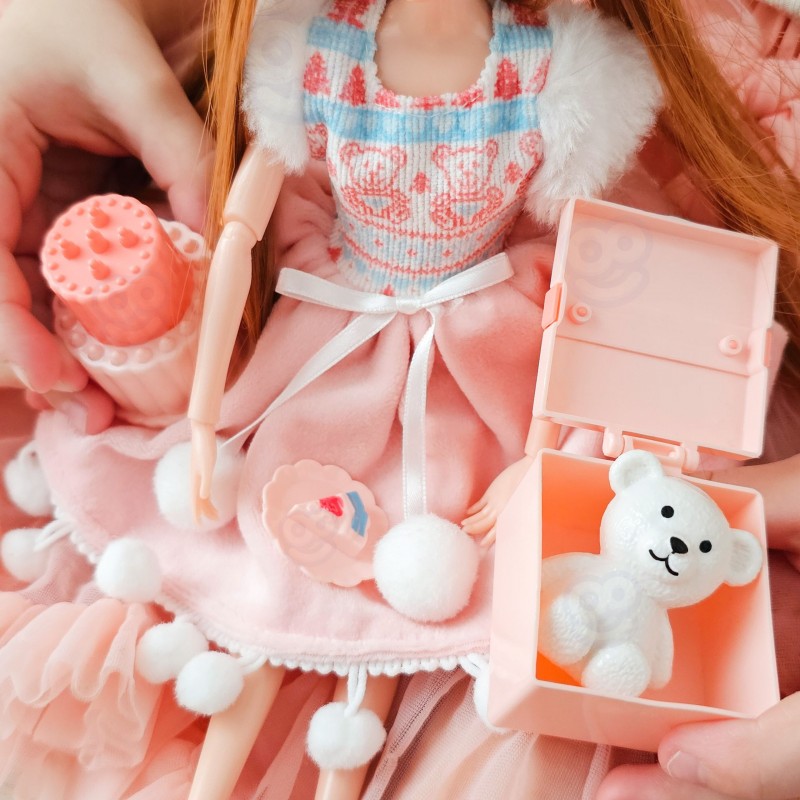 Lalka Emi z misiem i zimową sukienką od marki Woopie to wyjątkowa zabawka, która przeniesie każde dziecko w magiczny świat mody i marzeń. Piękna lalka o długich, brązowych włosach z koroną na głowie, ubrana w zimową sukienkę z pomponami i futerkowymi rękawkami zachwyci każdą małą miłośniczkę stylu. W zestawie znajduje się również uroczy miś – wierny towarzysz zabawy oraz akcesoria: prezent, tort i talerzyk z kawałkiem tortu. Strój i akcesoria są w różowo-białej kolorystyce, Zabawka wyróżnia się wysoką jakością wykonania, nowoczesnym designem oraz licznymi detalami, które sprawiają, że zabawa staje się jeszcze bardziej realistyczna i angażująca. Zestaw z lalką Emilka to nie tylko piękna ozdoba pokoju, ale przede wszystkim źródło radości, kreatywności i rozwoju dla Twojego dziecka. Dzięki niej maluch może tworzyć własne historie, bawić się w pokaz mody czy przyjęcie z pupilem. To gwarancja długich godzin beztroskiej zabawy pełnej uśmiechu i fantazji!