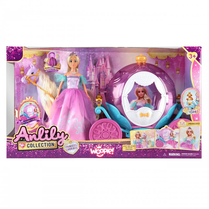 Przenieś się do świata baśni z zestawem KSIĘŻNICZKA I MAGICZNY POWÓZ od marki Woopie! To idealny prezent dla małych marzycielek od 3 roku życia. W zestawie znajduje się piękna lalka księżniczka, uroczy koń oraz luksusowy, fioletowo-turkusowy powóz. Lalka ma długie blond włosy, wykwintny makijaż, błyszczącą sukienkę i koronę, co sprawia, że wygląda jak prawdziwa królewska postać. Powóz ma otwierane okna i jest ozdobiony złotymi detalami. Zabawa tym zestawem to nieskończona ilość fantastycznych przygód!