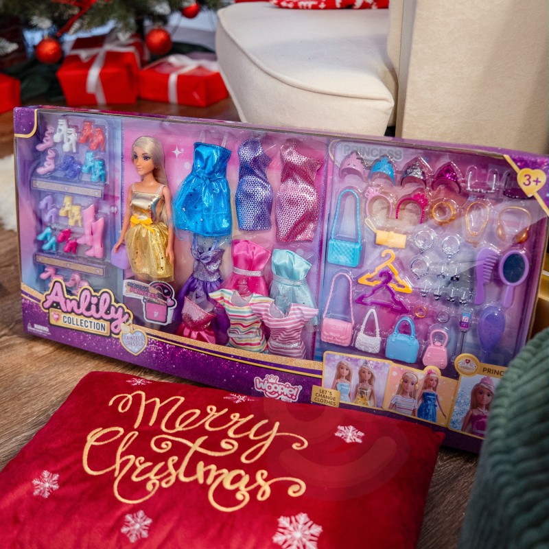 Odkryj magiczny świat mody z Lalką Lili i jej wyjątkowym zestawem stylizacji! Lalka w złotej sukience z długimi blond włosami pozwala na tworzenie niezliczonych modowych kombinacji dzięki 9 dodatkowym sukienkom. W zestawie znajdziesz także 13 par butów i 6 torebek, które idealnie uzupełnią każdą kreację. Liczne akcesoria, takie jak szczotki, opaski czy okulary, pozwalają dziecku wcielić się w projektanta mody i tworzyć własne pokazy. Idealny prezent rozwijający wyobraźnię, kreatywność i zdolności manualne dla każdej małej miłośniczki mody!