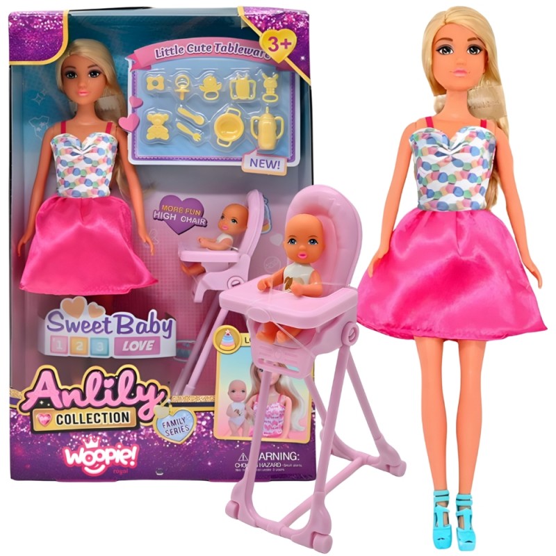 Lalka Lily z bobasem od marki Woopie to wyjątkowy zestaw do odgrywania scenek rodzinnych i codziennej opieki nad dzieckiem. Realistyczne detale, dodatki i akcesoria sprawiają, że zabawa staje się jeszcze bardziej angażująca i edukacyjna. Lalka ubrana jest w kolorową, stylową sukienkę i posiada długie, czesane włosy, które można stylizować w różnorodne fryzury. Bobas to uroczy maluszek, który czeka na karmienie w wysokim krzesełku – takim samym, jakie można spotkać w prawdziwych domach. Dziecko może użyć dołączonych akcesoriów: talerzyków, buteleczek, dzbanków i sztućców, by „nakarmić” bobasa, dbając o niego jak prawdziwa mama. Dzięki tej zabawce dziecko nie tylko spędza kreatywnie czas, ale również rozwija emocje, wyobraźnię oraz umiejętności manualne. To świetne narzędzie do zabawy w odgrywanie ról, które pozwala najmłodszym zrozumieć relacje międzyludzkie i codzienne obowiązki w ciepłej, domowej atmosferze.