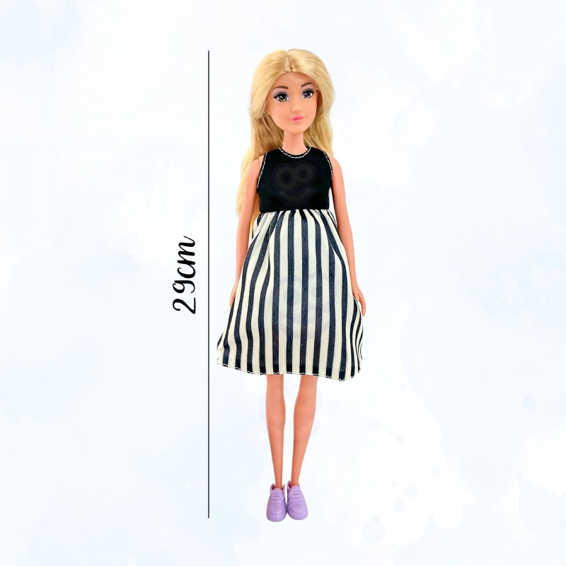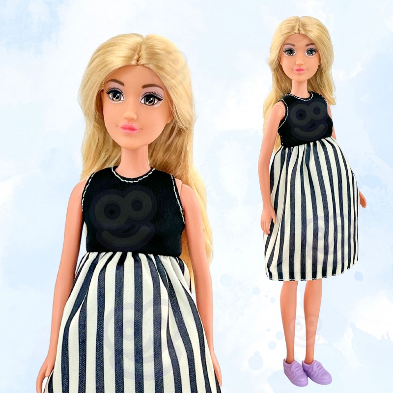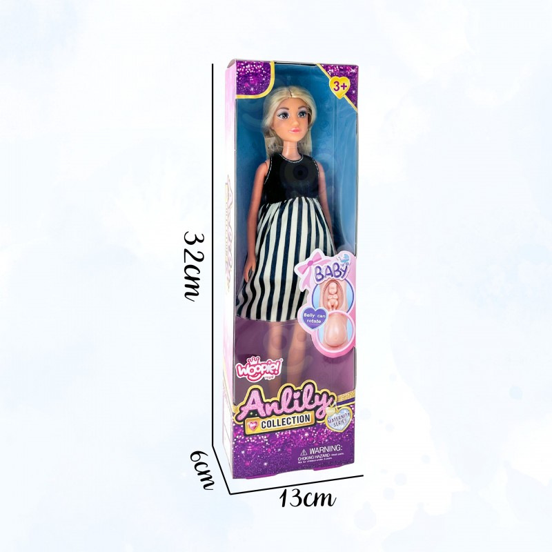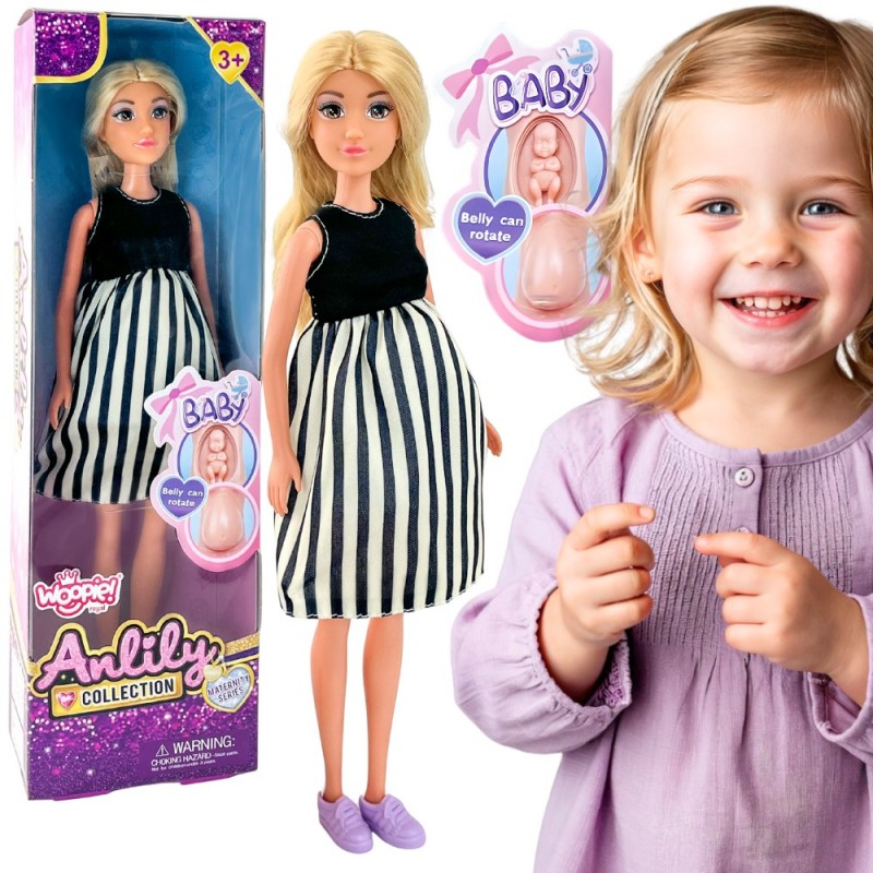 Lalka w ciąży od marki Woopie to niezwykła propozycja dla dzieci, które uwielbiają zabawy w dom, rodzinę i odgrywanie ról. Ta starannie wykonana zabawka pozwala wcielać się w postać przyszłej mamy i przeżywać wspólnie z nią ważny etap życia — oczekiwanie na dziecko. Realistyczny brzuch lalki skrywa małe niemowlę, które można wyjąć, co dodaje autentyczności i angażuje dziecko w odgrywanie emocjonalnych scenek. Dzięki funkcji wyjmowania niemowlęcia, dziecko ma szansę obserwować i symulować proces narodzin oraz pierwszych chwil opieki nad maluszkiem. Lalka ubrana jest w elegancką sukienkę w czarno-białe paski, która podkreśla jej modny wygląd, a miękkie, długie włosy można czesać i stylizować. Zabawka nie tylko bawi, ale również uczy empatii i wzmacnia więzi społeczne poprzez naśladowanie codziennych sytuacji rodzinnych. Jest to idealny wybór dla dzieci, które lubią odgrywać role, tworzyć scenariusze i wyrażać emocje poprzez zabawę. Lalka może być również świetnym narzędziem wspierającym rozmowy o rodzinie, miłości i opiece, zarówno w domu, jak i w przedszkolu.