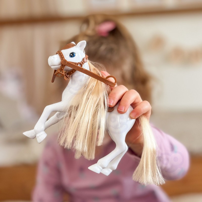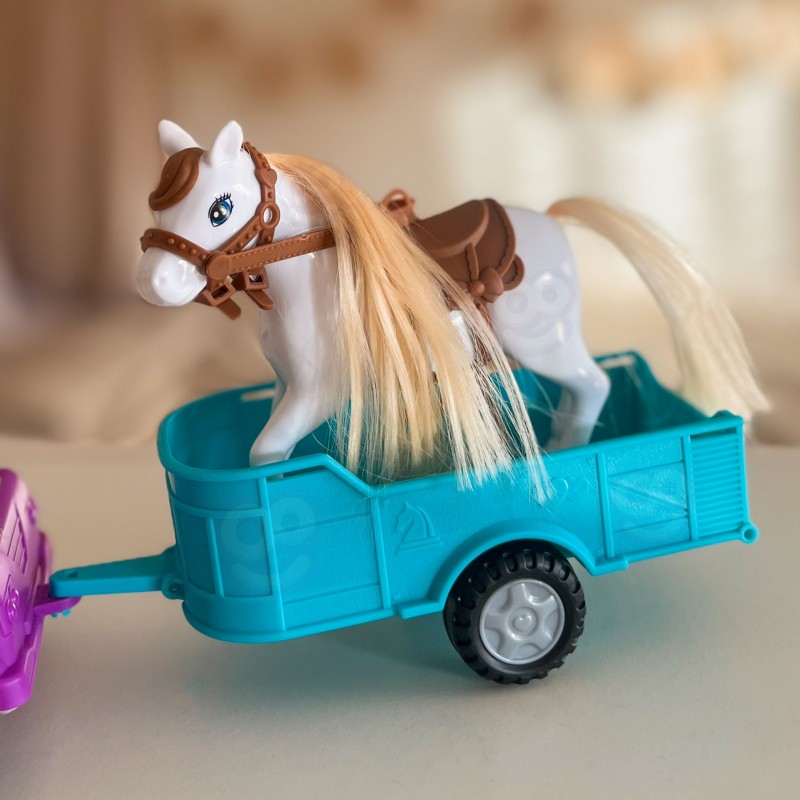 Wyrusz na wiejskie przygody z zestawem Kiki Lalka z Koniem, Samochodem i Przyczepą od marki Woopie! Ten obszerny zestaw do odgrywania ról z motywem ranczo/farmy zawiera mini lalkę, która potrafi usiąść za kierownicą fioletowego pojazdu terenowego. Doczep do niego turkusową przyczepę, aby przewieźć swojego konia! Lalka ma długie, blond włosy, które można czesać, a koń posiada siodło i uzdę. To idealna zabawka, która rozwija wyobraźnię i kreatywność oraz pozwala na tworzenie nieskończonej ilości scenariuszy związanych z życiem na farmie. Zestaw przeznaczony jest dla dzieci od 3 roku życia.