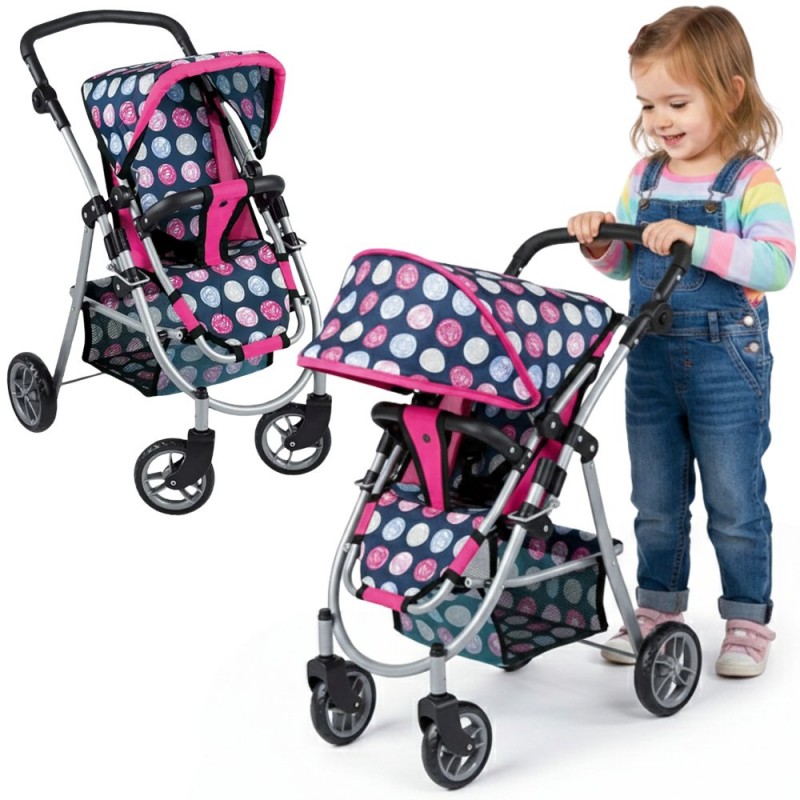 Stylowy i funkcjonalny wózek dla lalek od marki WOOPIE to wymarzony prezent każdej małej miłośniczki zabawy lalkami. Dzięki regulowanemu siedzisku można go łatwo dostosować do różnych potrzeb zabawy, umożliwiając przewożenie ulubionych lalek. Obracające się przednie koła gwarantują płynność prowadzenia, a solidna konstrukcja zapewnia stabilność podczas spacerów. Wózek wyposażono w miękką, wygodną rączkę i pojemny koszyk na akcesoria, który pomieści wszystkie drobiazgi niezbędne podczas zabawy. Składany daszek chroni lalki przed "słońcem", a kompaktowa konstrukcja sprawia, że wózek łatwo przechowywać, gdy zabawa dobiegnie końca.