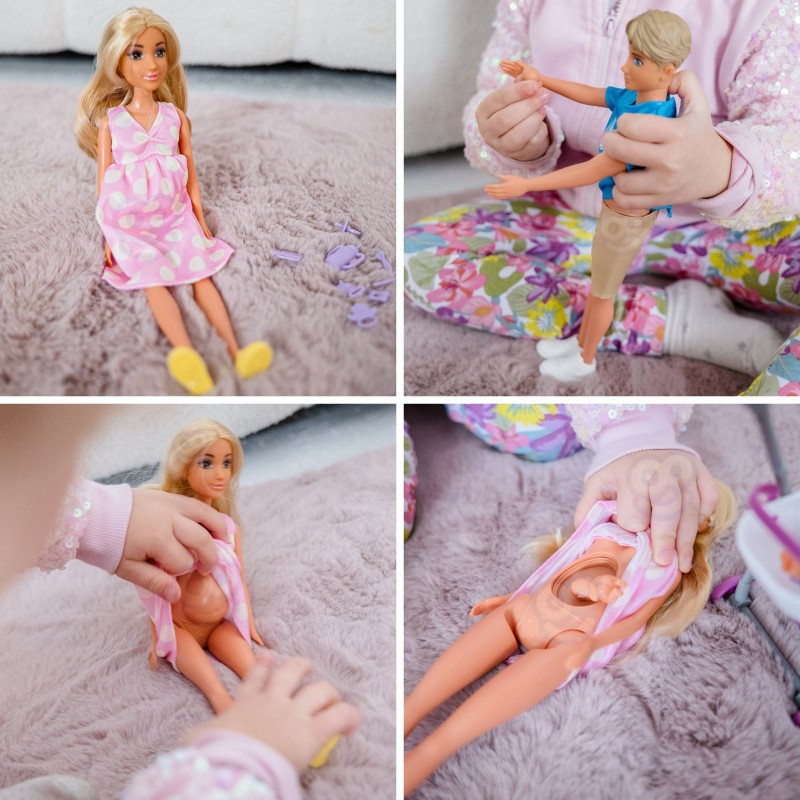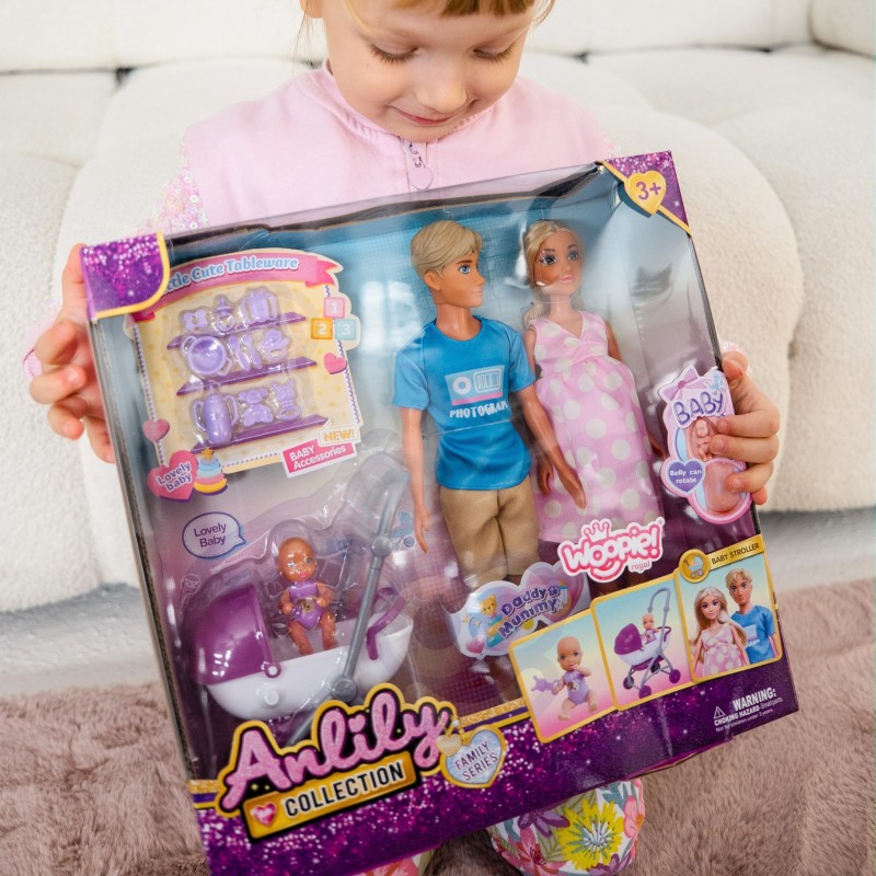 Zestaw rodzinny z lalkami od marki Woopie to wspaniała propozycja dla dzieci, które uwielbiają zabawy tematyczne i odgrywanie codziennych ról społecznych. W komplecie znajduje się lalka-mama w ciąży, stylowy tata, niemowlę oraz bogaty zestaw akcesoriów i funkcjonalny wózek do przewożenia maluszka. Zestaw nawiązuje do scenek z życia rodzinnego, umożliwiając dziecku stworzenie własnych historii, które uczą empatii, odpowiedzialności i troski o innych. Lalka-mama ubrana jest w uroczą sukienkę w różowe grochy, a jej brzuch zawiera wyjmowaną figurkę dziecka. Postać taty to nowoczesny tata w stylowej koszulce. Bobas w wózku spacerowym oraz drobne akcesoria takie jak butelka, miseczka, smoczek czy pieluszki, które zwiększają realizm i angażują dziecko do kreatywnej, dopełniają zestaw.