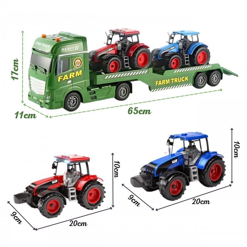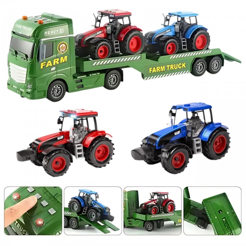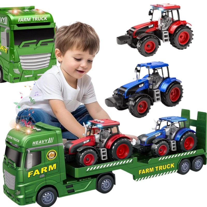 Zestaw rolniczy z lawetą i traktorami to wyjątkowa propozycja dla każdego małego fana pojazdów rolniczych i transportowych. Dzięki swojej dużej skali i solidnej konstrukcji, zabawka idealnie sprawdza się zarówno podczas zabawy w domu, jak i na świeżym powietrzu. Każdy z pojazdów został starannie zaprojektowany z dbałością o szczegóły i funkcje, które sprawiają, że zabawa staje się wyjątkowo realistyczna. Ciężarówka z funkcją lawety została wyposażona w ruchomą rampę załadunkową, która umożliwia samodzielny załadunek i rozładunek pojazdów. Rampę można łatwo opuścić i podnieść, co pozwala na odgrywanie realistycznych scenek transportowych. Laweta oraz jeden traktor zostały wyposażone w efekty świetlne i dźwiękowe – po naciśnięciu odpowiednich przycisków dziecko usłyszy realistyczne dźwięki jazdy, klaksonu oraz sygnały robocze, a światła w kabinie zaczynają świecić, co znacznie podnosi atrakcyjność zestawu. Ten zestaw świetnie sprawdzi się nie tylko w domu, ale i na zewnątrz – dziecko może tworzyć własne gospodarstwo, transportować sprzęt i wymyślać scenariusze zabaw. Zestaw nie tylko dostarcza ogromną ilość rozrywki, ale także rozwija zdolności manualne, logiczne myślenie, kreatywność i koordynację wzrokowo-ruchową.Solidna konstrukcja oraz estetyczne wykonanie czynią ten produkt idealnym pomysłem na prezent urodzinowy lub świąteczny.