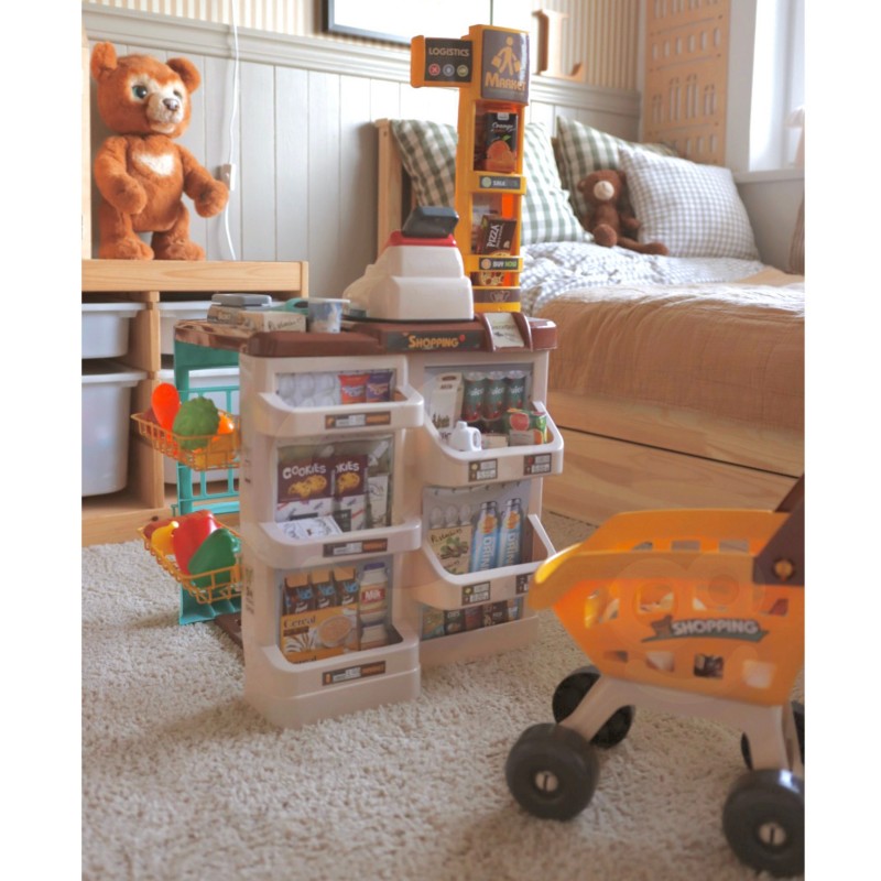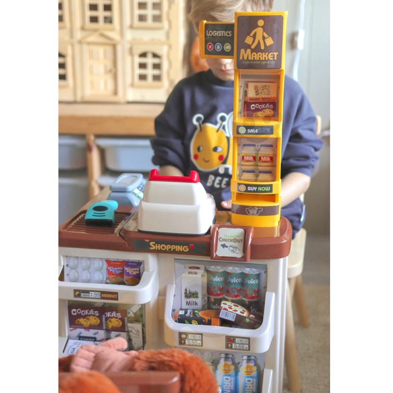 Kompleksowo wyposażony supermarket z wózkiem na zakupy to doskonały zestaw do kreatywnej zabawy w sklep. Dzieci uwielbiają naśladować codzienne czynności dorosłych, a ten wieloelementowy komplet pozwala na stworzenie realistycznego stoiska handlowego w domowym zaciszu. Stanowisko zostało zaprojektowane z dbałością o szczegóły i pomieści cały niezbędny asortyment, dostarczając mnóstwa radości. Wielofunkcyjny zestaw składa się z aż 48 elementów. Znajdziemy w nim przestronne półki na produkty, zabawkową wagę, otwieraną kasę sklepową oraz precyzyjnie odwzorowany skaner produktów. Dołączony do kompletu wózek na kółkach pozwala na wygodne robienie zakupów przez małych klientów. To idealna zabawka, która świetnie sprawdzi się do samodzielnej zabawy, jak i do angażowania rodzeństwa czy rodziców.