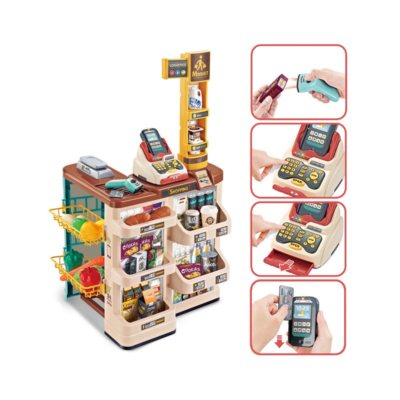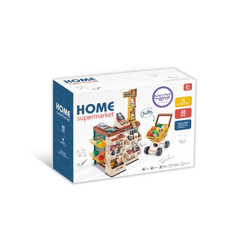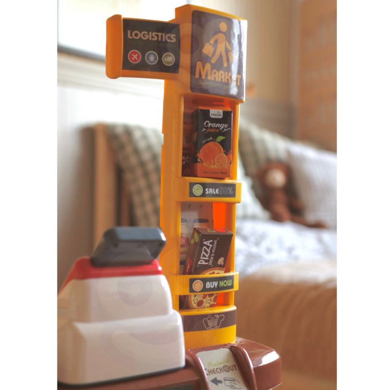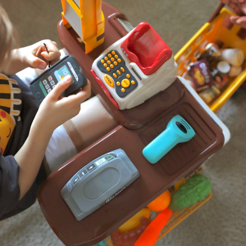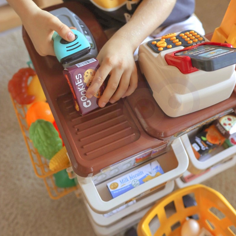 WOOPIE Sklep Supermarket z Wózkiem Waga Kasa Skaner + 48 Akc.