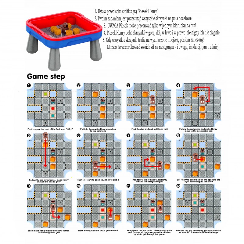 Henry to uroczy piesek, który uwielbia przesuwać skrzynki... ale potrzebuje Twojej pomocy, by trafić je na właściwe miejsce! Ta gra to 20 poziomów czystej zabawy, podczas których będziesz trenować swoje logiczne myślenie i umiejętność planowania