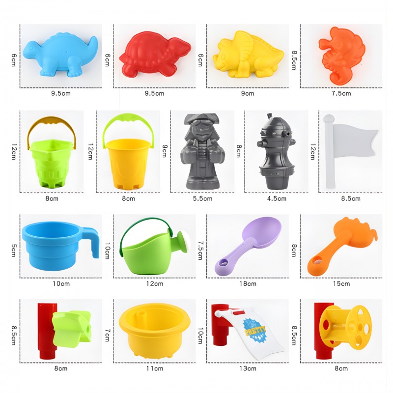 Stolik został podzielony na trzy sekcje – osobno na wodę, piasek i przestrzeń do zabawy. Dodatkowe 13 akcesoriów zapewnia jeszcze więcej frajdy! Zestaw świetnie sprawdzi się zarówno w domu, jak i na świeżym powietrzu – np. na plaży czy w ogrodzie.