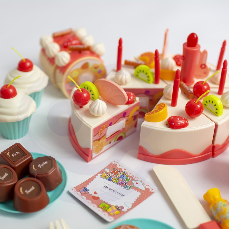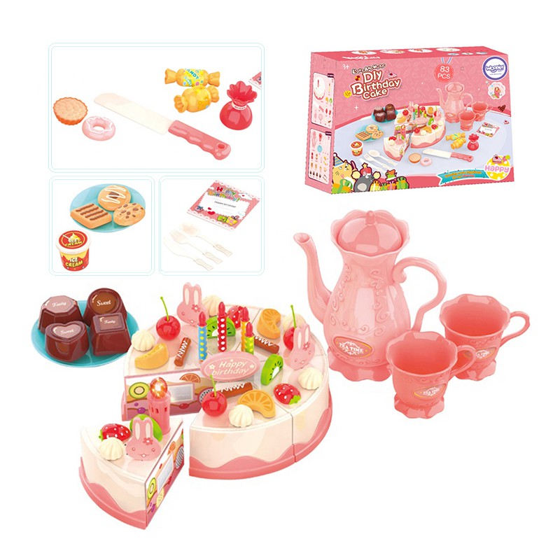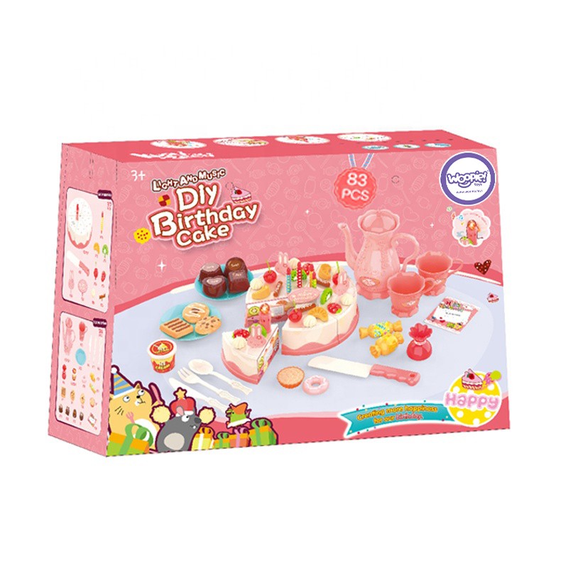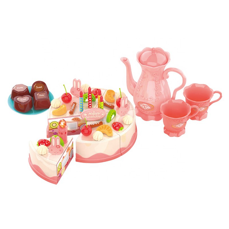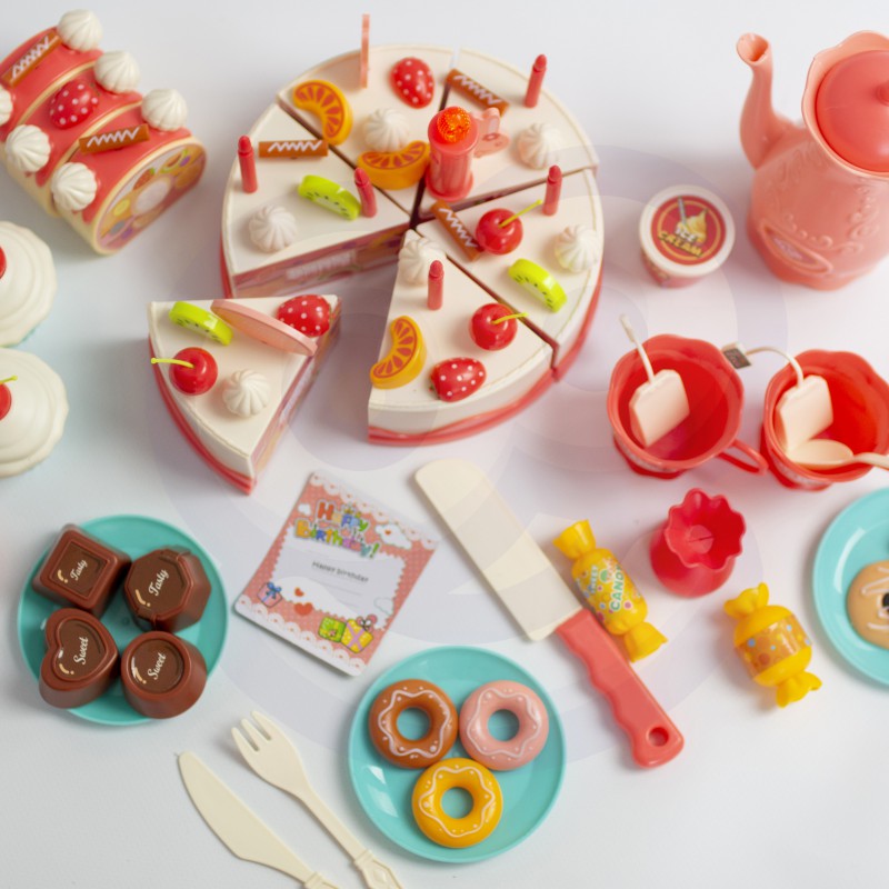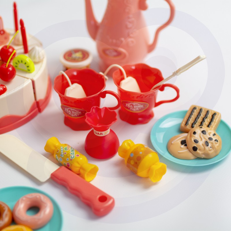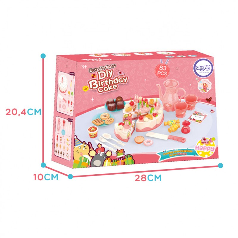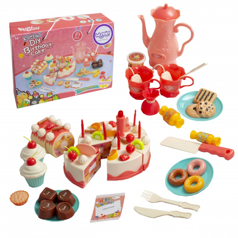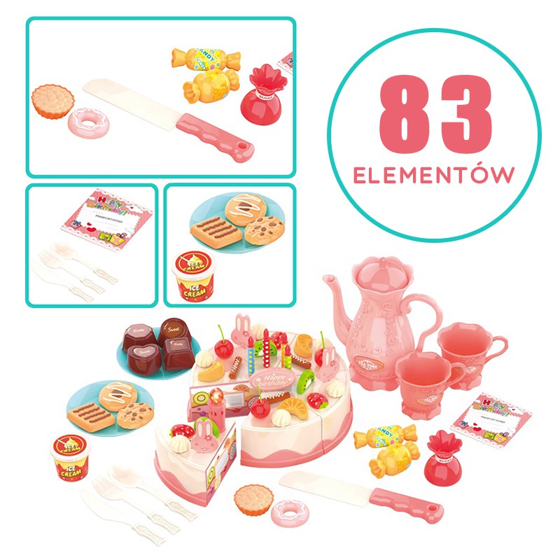 Zestaw do herbaty z tortem od renomowanej marki Woopie to idealna propozycja na spotkania z przyjaciółmi. Zestaw urodzinowy będzie idealnym atrybutem każdej małej gospodyni do zorganizowania niezapomnianego przyjęcia. W zestawie znajdziemy pięknie udekorowany tort, który możemy pokroić na 6 kawałków i poczęstować swoich gości. W skład zestawu (83 akcesoriów) wchodzą także inne przekąski, np. czekoladki, ciasteczka itp. Dziecko może dekorować tort według własnych pomysłów, dzięki dołączonych do zestawu świeczek i owoców.