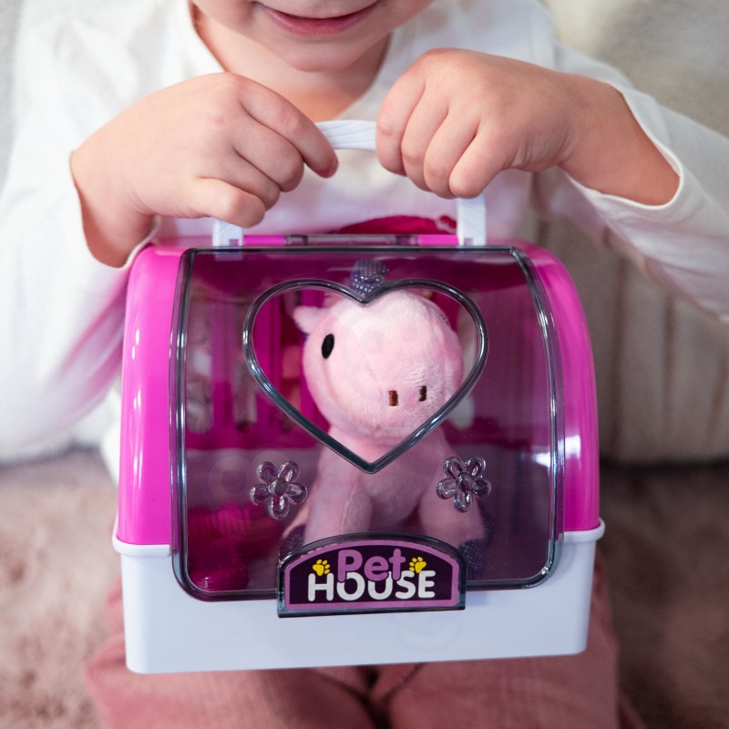 Szukasz idealnej zabawki, która połączy opiekę nad zwierzątkiem z kreatywną zabawą? Ten uroczy zestaw Domek dla zwierzaka od marki Woopie to przenośny domek z różowym pluszowym jednorożcem i szczotką do pielęgnacji. Dziecko może zabrać swojego pupila wszędzie – do przedszkola, na spacer czy w podróż. Przezroczyste drzwiczki w kształcie serca pozwalają podejrzeć jednorożca w środku, a wygodna rączka ułatwia przenoszenie. To zabawka, która rozwija empatię, odpowiedzialność i wyobraźnię podczas codziennej zabawy.
