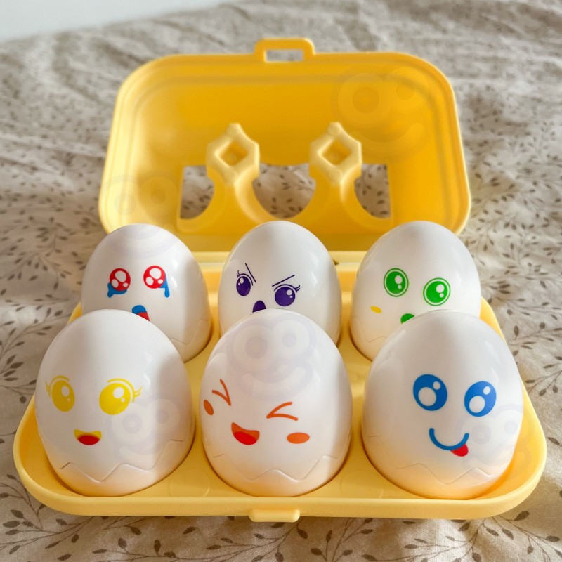 Białe jajka edukacyjne z kolorowymi naklejkami od marki Woopie wprowadzą Twoje dziecko w świat pełen kolorów, kształtów i zabawnych minek. Każde z sześciu uroczych jajeczek skrywa w środku kolorowego pisklaka z inną, śmieszną minką , po naciśnięciu na którego usłyszymy efekt dźwiękowy. Zadaniem malucha jest nie tylko dopasowanie odpowiedniej skorupki do jajka, ale przede wszystkim dopasowanie go do odpowiedniego miejsca w wytłaczance. Każde jajko ma na spodzie unikalny kształt geometryczny, który odpowiada jednemu otworowi w pudełku. Zabawne minki to świetny sposób, aby nauczyć dzieci rozpoznawania i nazywania emocji. Dzięki nim maluchy w łatwy i przyjemny sposób przyswajają, jak wyglądają i co oznaczają różne uczucia.To fantastyczny trening logicznego myślenia i koordynacji!
