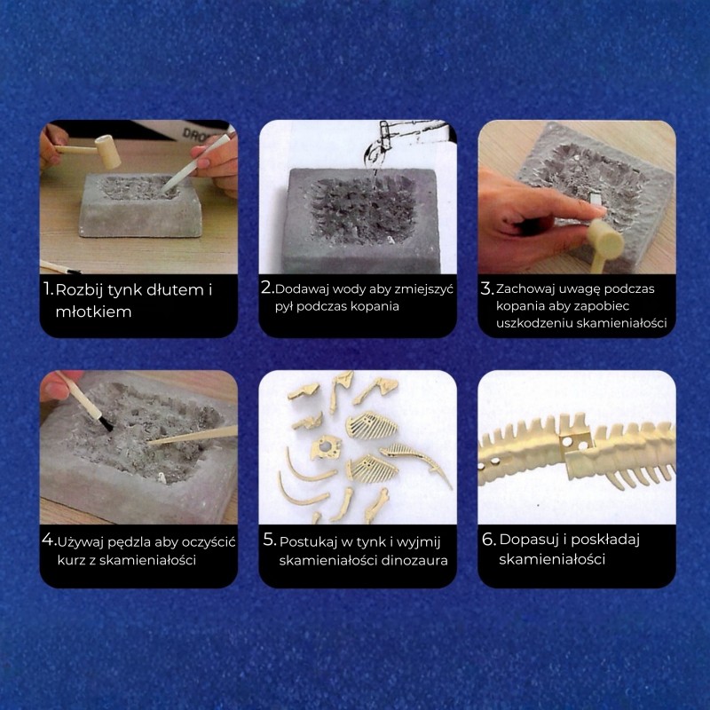 Ten zestaw do kopania skamielin stegozaura od marki WOOPIE to fantastyczny prezent dla dzieci, które interesują się dinozaurami. Zabawa polega na wydobywanie skamieniałości i złożeniu z nich dinozaura. Zestaw pozwala poczuć się jak prawdziwy paleontolog, wykopując skamieniałości i odkrywając kości dinozaurów. Dzięki dołączonym narzędziom do kopania, stukania, szczotkowania i składania, dzieci mogą spędzić wiele godzin na edukacyjnej zabawie, inspirować się naukami przyrodniczymi i rozwijać swoje umiejętności praktyczne oraz myślenie. Idealny prezent zarówno dla chłopców, jak i dziewczynek!