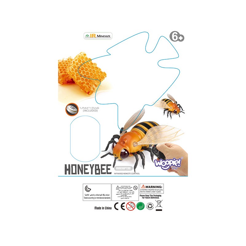 Zdalnie Sterowana Pszczoła na Pilot od marki WOOPIE to zdalnie sterowany robot w formie pszczoły, przeznaczony dla dzieci powyżej 6 roku życia. Robot jest kolorowy, z wyraźnymi czarnymi i żółtymi pasami, imitującymi wygląd prawdziwej pszczoły. Skrzydła są przezroczyste i szczegółowo odwzorowują strukturę skrzydeł owada. Sterowanie odbywa się za pomocą dołączonego pilota z technologią podczerwieni.