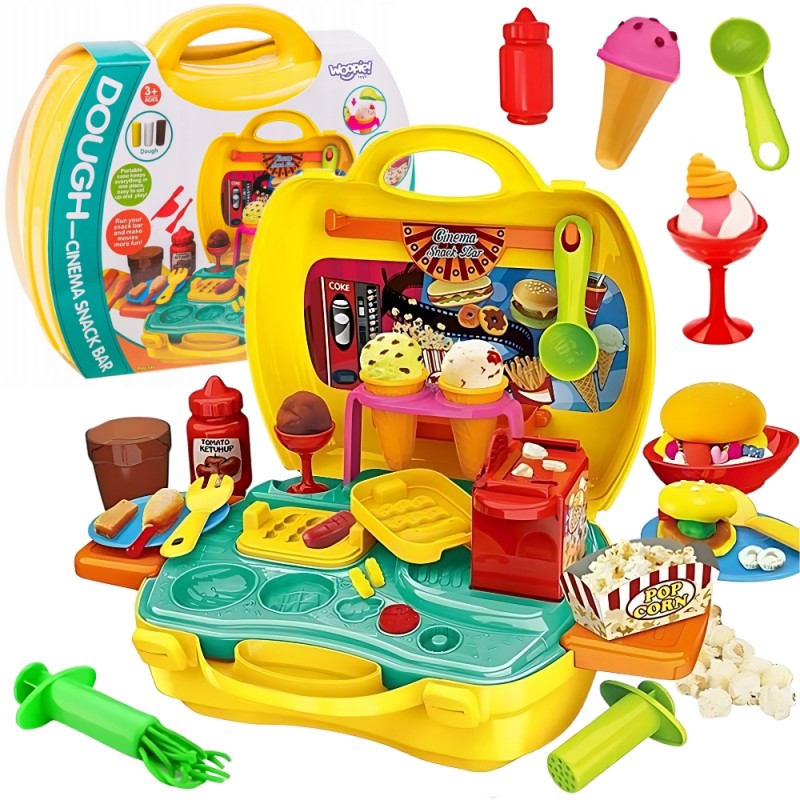 Zestaw do robienia przekąsek od marki Woopie to spełnienie marzeń każdego małego smakosza i aspirującego kucharza. Ten uroczy, przenośny zestaw do zabawy w bar z przekąskami pozwoli Twojemu dziecku na kreatywne spędzanie czasu, rozwijając jednocześnie jego zdolności manualne i wyobraźnię. Kompaktowy, zamykany w wygodnej walizeczce, jest idealny do zabawy w domu, u znajomych, a także w podróży. Wystarczy otworzyć walizkę, by w kilka sekund rozłożyć bar i rozpocząć kulinarną przygodę. Bogactwo akcesoriów gwarantuje godziny wciągającej zabawy. Dziecko może wcielić się w rolę kucharza, sprzedawcy lub klienta, tworząc własne scenariusze i dania. Zestaw pozwala na przygotowanie ulubionych przekąsek, takich jak lody, frytki, hamburgery czy popcorn. Wystarczy uformować z ciastoliny kształt danego produktu, by następnie serwować go na talerzyku lub w specjalnych opakowaniach. Wysoka jakość wykonania i bezpieczne materiały zapewniają bezpieczną i trwałą rozrywkę na długi czas. To doskonały pomysł na prezent, który z pewnością zachwyci każde dziecko i zapewni mu mnóstwo radości.