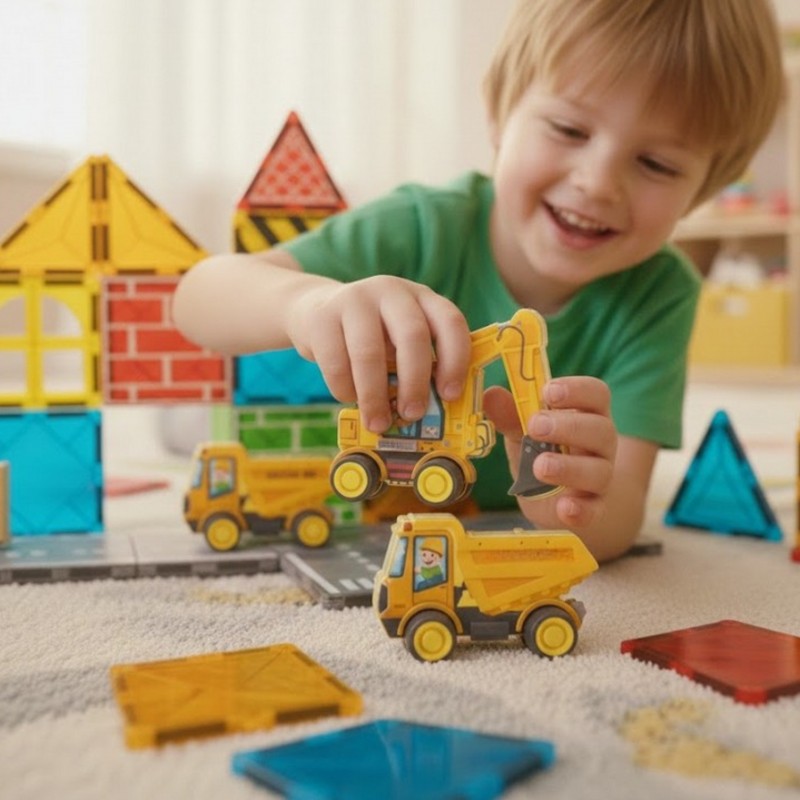 Zestaw klocków magnetycznych z pojazdami budowlanymi od marki Woopie łączy kreatywność z fascynującym światem budowy. Magnetyczne elementy pozwalają dzieciom tworzyć stabilne, kolorowe konstrukcje, a realistyczne pojazdy (z wolnymi kołami) zachęcają do zabawy w małych inżynierów. Zestaw zawiera 30 elementów o wymiarze 7,5 × 7,5 cm — idealnych dla dziecięcych rączek. Produkt jest bezpieczny, trwały i prosty w łączeniu, dzięki czemu zabawa przebiega szybko i bez frustracji. To doskonały prezent rozwijający wyobraźnię, zdolności manualne i współpracę w grupie.