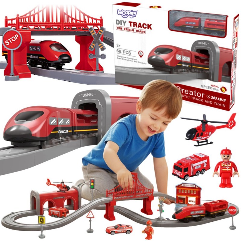 Fascynujący zestaw kolejki elektrycznej marki Woopie to prawdziwe centrum dowodzenia dla małych konstruktorów! Czerwony pociąg ekspresowy wprowadzi dziecko w świat budowy, planowania tras i tworzenia własnych scenariuszy zabawowych. Dzięki bogatemu wyposażeniu w mosty, tunele, sygnalizację świetlną i wyposażenie straży pożarnej, maluch może komponować nieograniczoną liczbę układów torowych, a następnie obserwować, jak pociąg mknie przez ich autorskie miasto. To zabawka, która łączy ekscytację prawdziwej kolei z kreatywnością dziecięcego świata