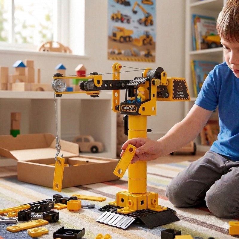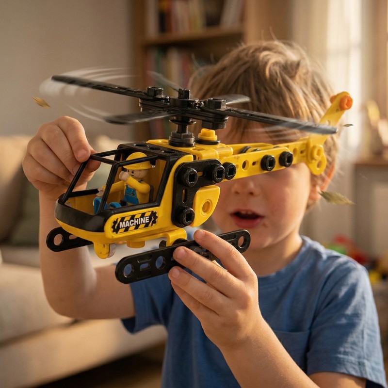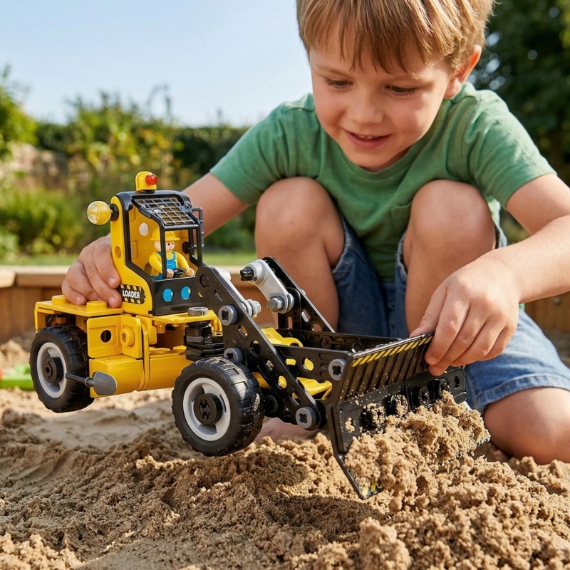 Odkryj fascynujący świat budownictwa z zestawem Konstrukcyjnym Pojazdy Budowlane STEAM marki Woopie. Ten wyjątkowy zestaw klocków konstrukcyjnych pozwala dzieciom zbudować aż 6 różnych modeli pojazdów budowlanych z jednego zestawu części. Każdy model reprezentuje prawdziwe maszyny używane w kamieniołomach i na placach budowy - od potężnych koparek, przez dźwigi budowlane, aż po śmigłowce ratownicze. Żółto-czarna kolorystyka nadaje zabawce profesjonalnego, przemysłowego charakteru, a liczne ruchome elementy zapewniają realistyczne doświadczenie zabawy.