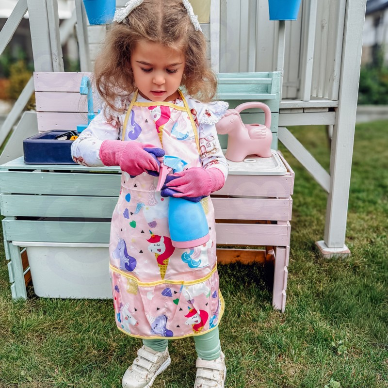 Kolorowy Zestaw Małego Ogrodnika z motywem jednorożca od Marki Woopie to idealny sposób na zachęcenie dzieci do kreatywnej zabawy na świeżym powietrzu. Dzięki praktycznym i bezpiecznym narzędziom maluchy mogą sadzić rośliny, pielęgnować swój mały ogródek i odkrywać tajniki natury. Kolorowy fartuszek z uroczym wzorem jednorożców chroni ubrania i sprawia, że dziecko jeszcze chętniej wciela się w rolę ogrodnika. Zestaw świetnie sprawdzi się także w domu, na balkonie, plaży czy podczas rodzinnych wypraw. To doskonały prezent, który rozwija wyobraźnię, odpowiedzialność i miłość do przyrody już od najmłodszych lat.