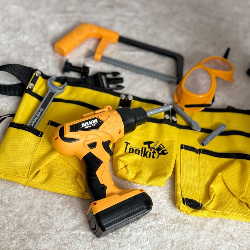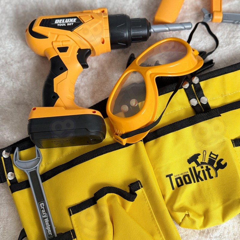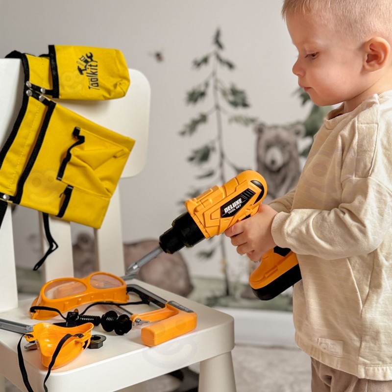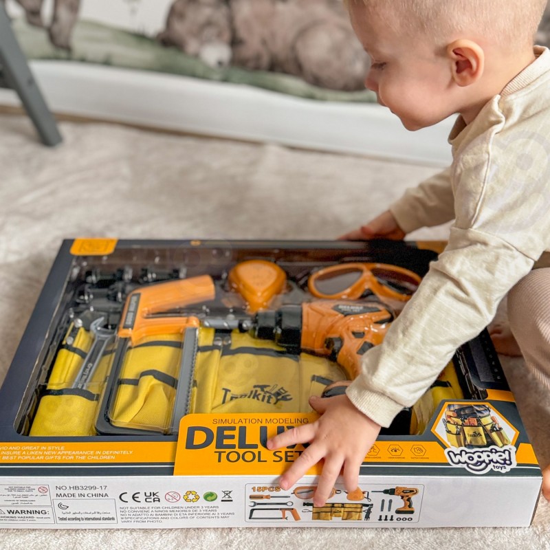 Zestaw Narzędzi Małego Majsterkowicza marki WOOPIE to kompletny zestaw narzędzi do zabawy w budowę:, okulary ochronne, pas na narzędzia, wkrętarka zasilana bateriami oraz narzędzia i elementy konstrukcyjne pobudzają wyobraźnię i zachęcają do twórczej zabawy w majsterkowanie. Realistyczne efekty zabawek oraz solidne dodają autentyczności i zapewniają długie godziny zabawy.