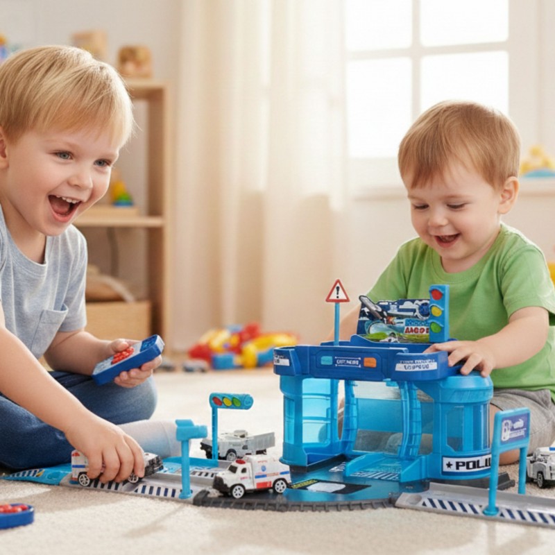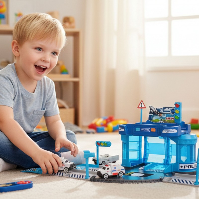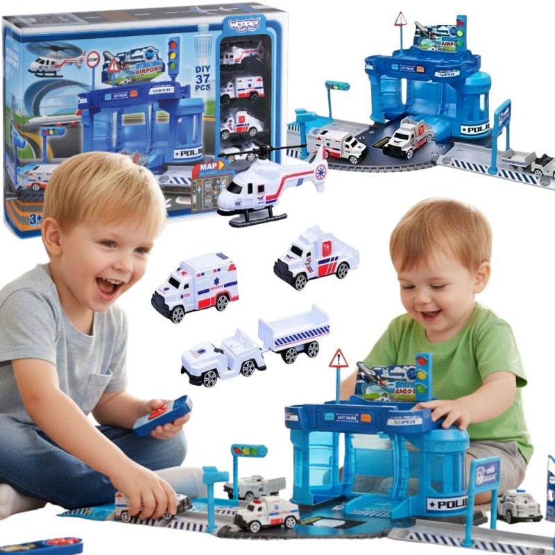 Zestaw tematyczny od marki Woopie to idealna propozycja dla małych fanów pojazdów, samolotów i zabawy w policję! Zamiast klasycznego garażu piętrowego, ten zestaw przedstawia posterunek policji przy lotnisku wraz z pojazdami, helikopterem i dużą, rozkładaną matą z nadrukiem pasów startowych. Bogaty komplet akcesoriów i różnorodne pojazdy zapewnią wiele godzin kreatywnej zabawy i rozwiną wyobraźnię Twojego dziecka.