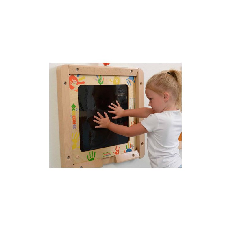Duża tablica o wielkości 46 x 46 cm pozwala na zabawę wielu dzieci jednocześnie. Wszystkie dzieci mogą dotykać tablicy i porównywać odciski, które powstają. Można w ten sposób określić kto ma cieplejsze dłonie, a komu marzną rączki. Zabawa jest bardzo wciągająca, zwłaszcza jeśli bawi się cała gromadka.